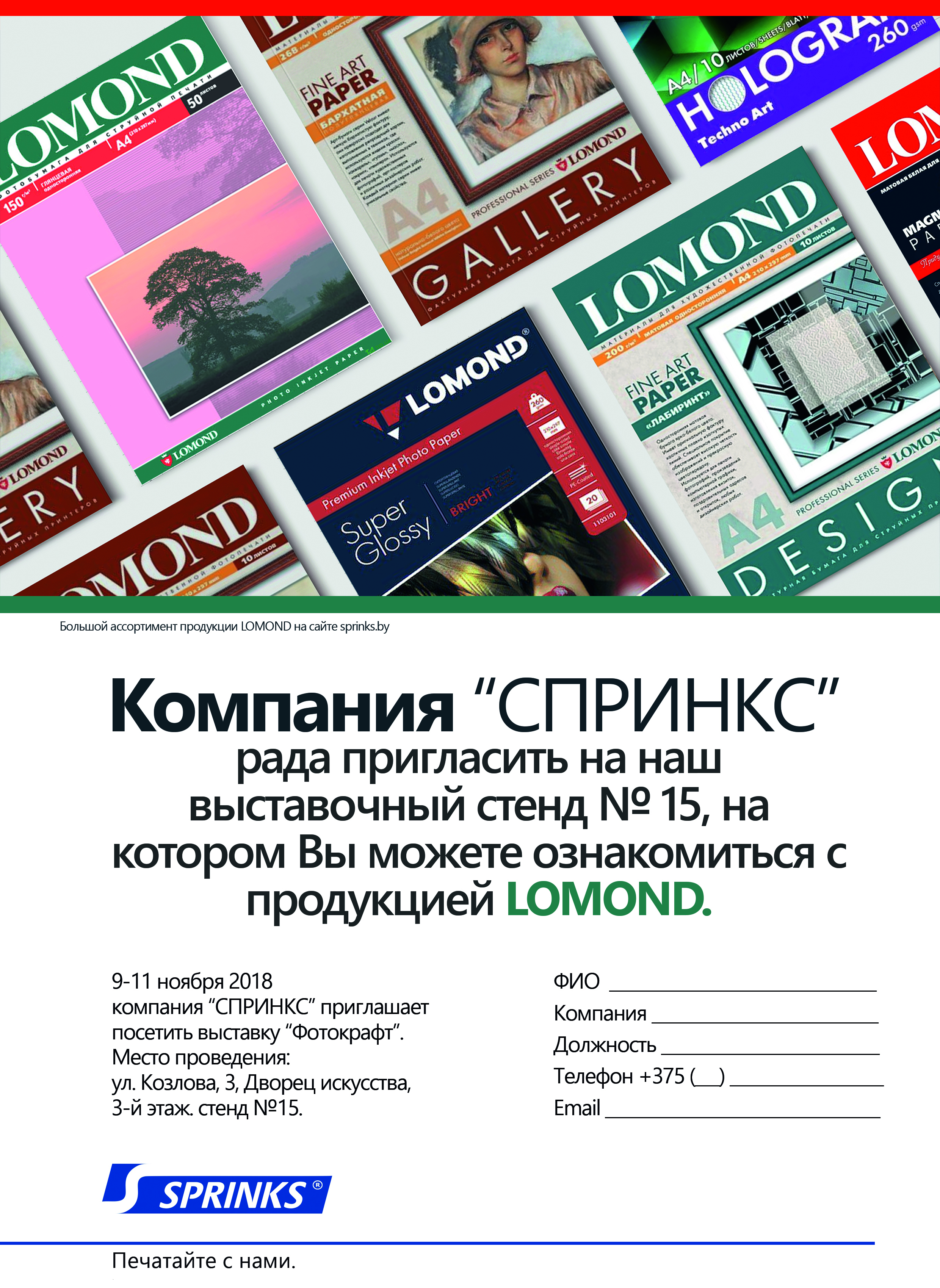 Приглашаем посетить наш стенд №15 на выставке Фотокрафт в Минске. Для бесплатного посещения выставки скачайте, распечатайте  и заполните пригласительный билет по ССЫЛКЕ.
