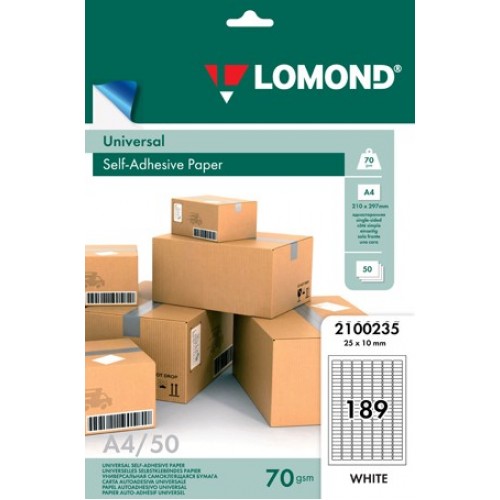 - Модель: Lomond A4, 189 шт. (25.4 х 10 мм), 70 г/м2, 50л (2100235)